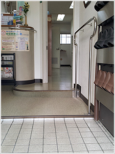 中までほとんどバリアフリーです。 使い捨てスリッパもございます。